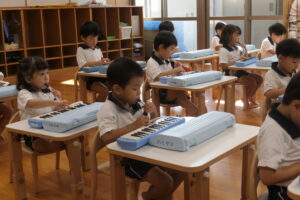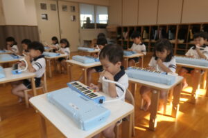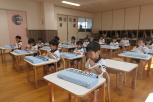 「メーリさんの羊」をピアニカで弾きました。上手に弾けるお友達が増え、「上手に弾けてるね」「「上手で先生ビックリしました」と声を掛けられると、とても嬉しそうに笑顔を見せ繰り返し弾いていました。「今日も持って帰ったら練習するね」「上手に弾けるようになりたい!!」と意気込んでいました。