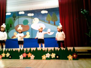 少しずつ舞台に立つことに慣れてきました。時々、音楽に合わせて体を動かし踊っていました。
