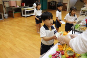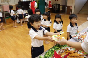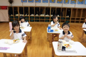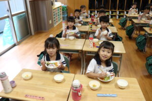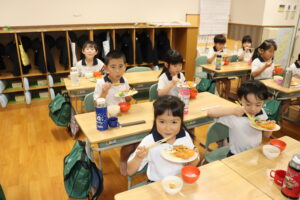 給食ではクリスマスメニューに「美味しそう‼」と笑顔を見せ、嬉しそうに頂いていました。
